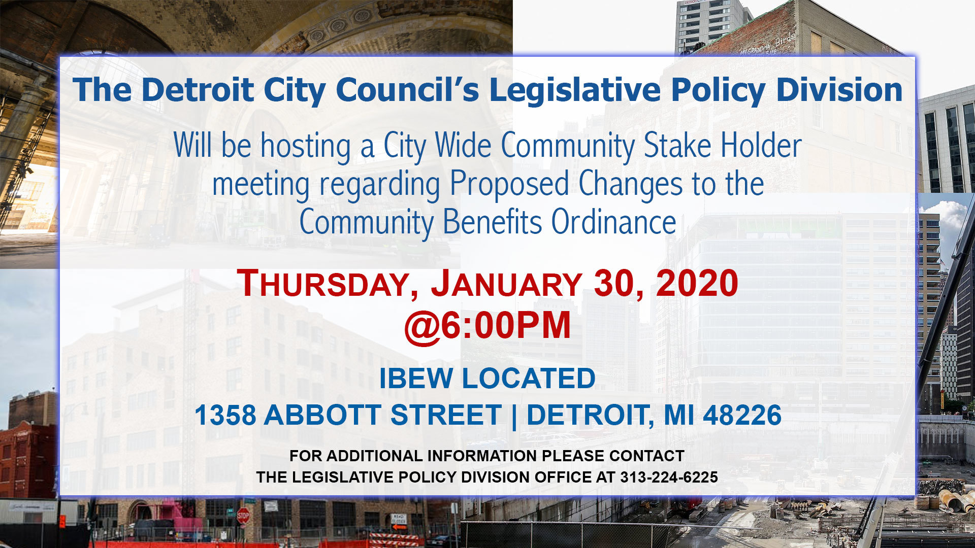 Detroit City Council also seems to think the CBO should be strengthened. The council’s Legislative Policy Division is organizing citywide stakeholder meetings to gather input on potential amendments, and some councilmembers have submitted their own proposals.