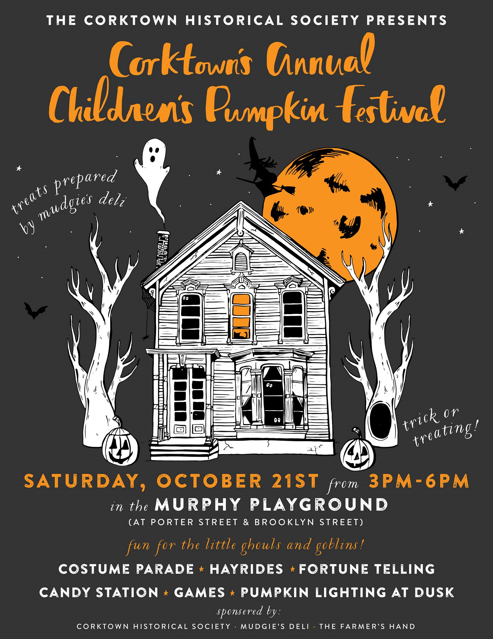 We invite you to an afternoon of spooky fun at Corktown's Annual Pumpkin Festival! Fun for the little ghouls and goblins! Costume parade, Hayrides, Fortune Telling, Trick or Treating candy stations, Games and pumpkin lighting at dusk! A wonderful day for children of all ages to enjoy the season!