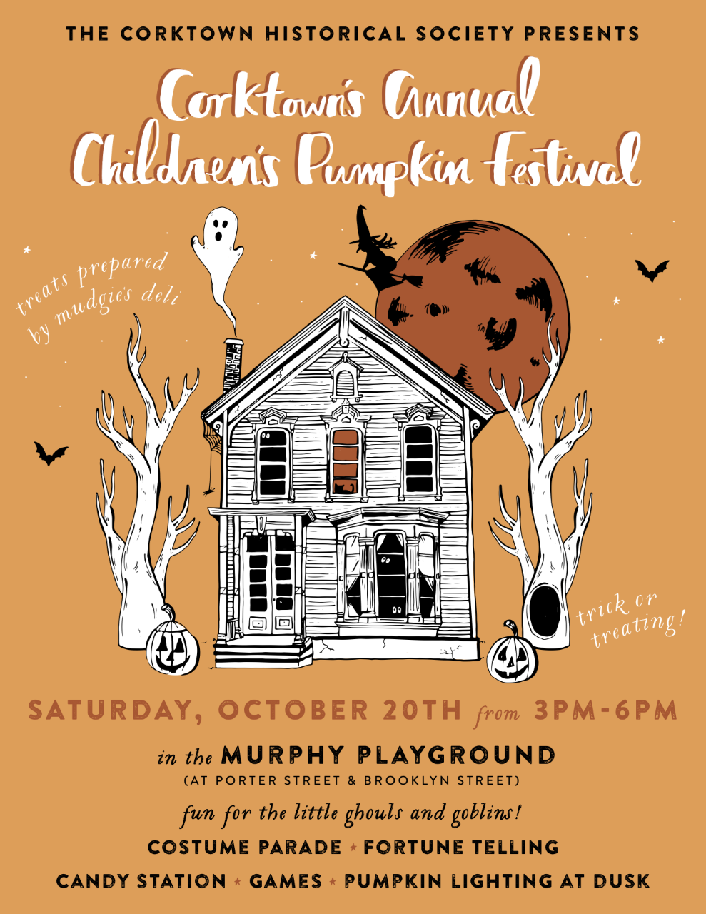 We invite you to an afternoon of spooky fun at Corktown's Annual Children’s Pumpkin Festival! Fun for the little ghouls and goblins! Costume parade, Fortune Telling, Trick or Treating candy stations, Games and pumpkin lighting at dusk! A wonderful day for children of all ages to enjoy the season! Saturday October 20th 3pm-6pm in the Murphy Play lot across from Mudgies Deli on the Corner of Porter and Brooklyn