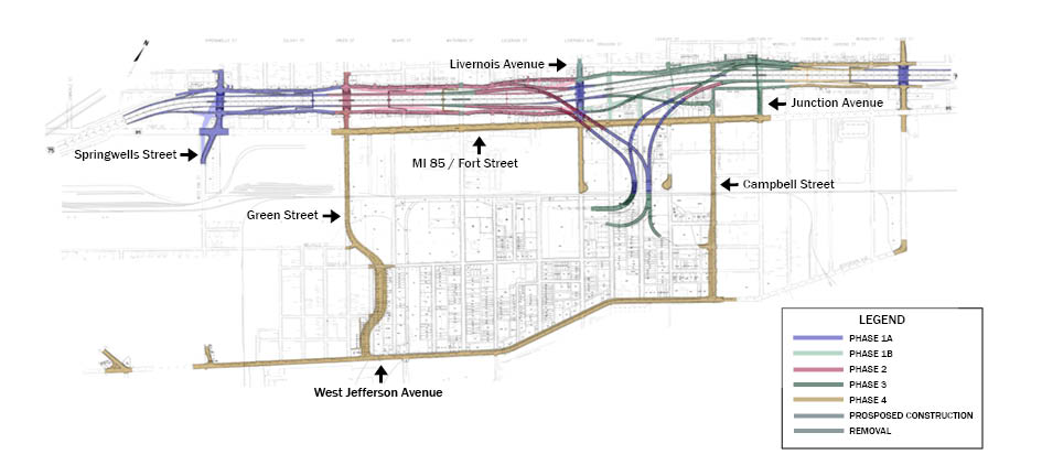 - The southbound I-75 onramp at Clark Street, northbound I-75 onramp from Livernois Avenue, and northbound I-75 offramp to Campbell Street will be completed during this phase.